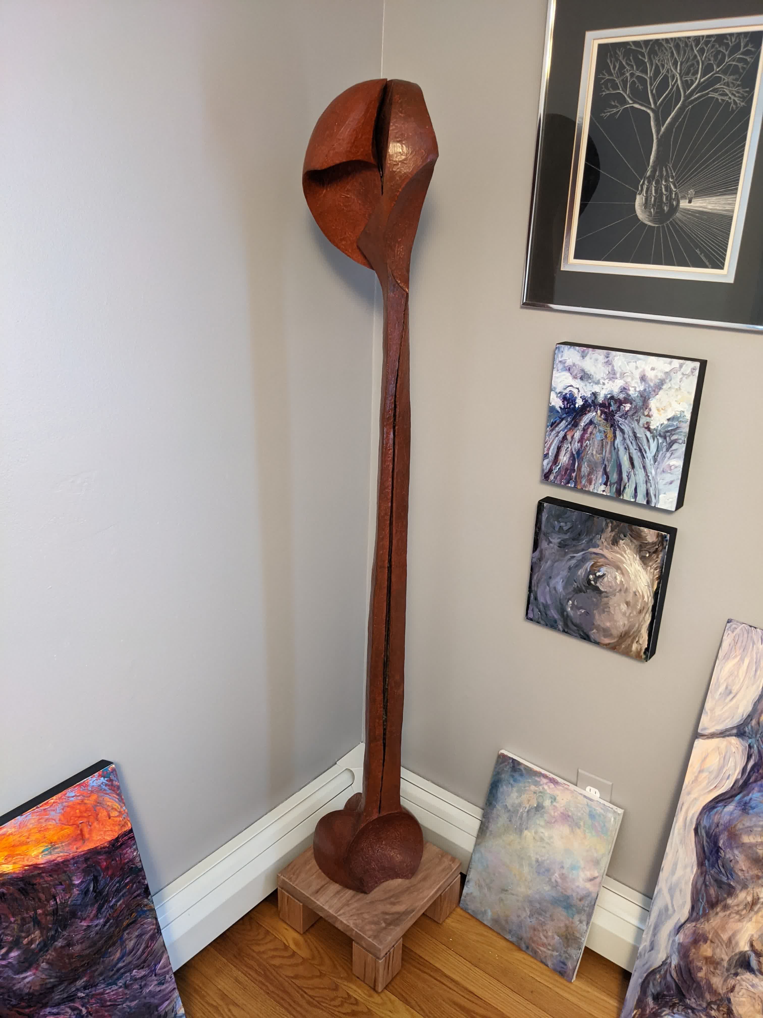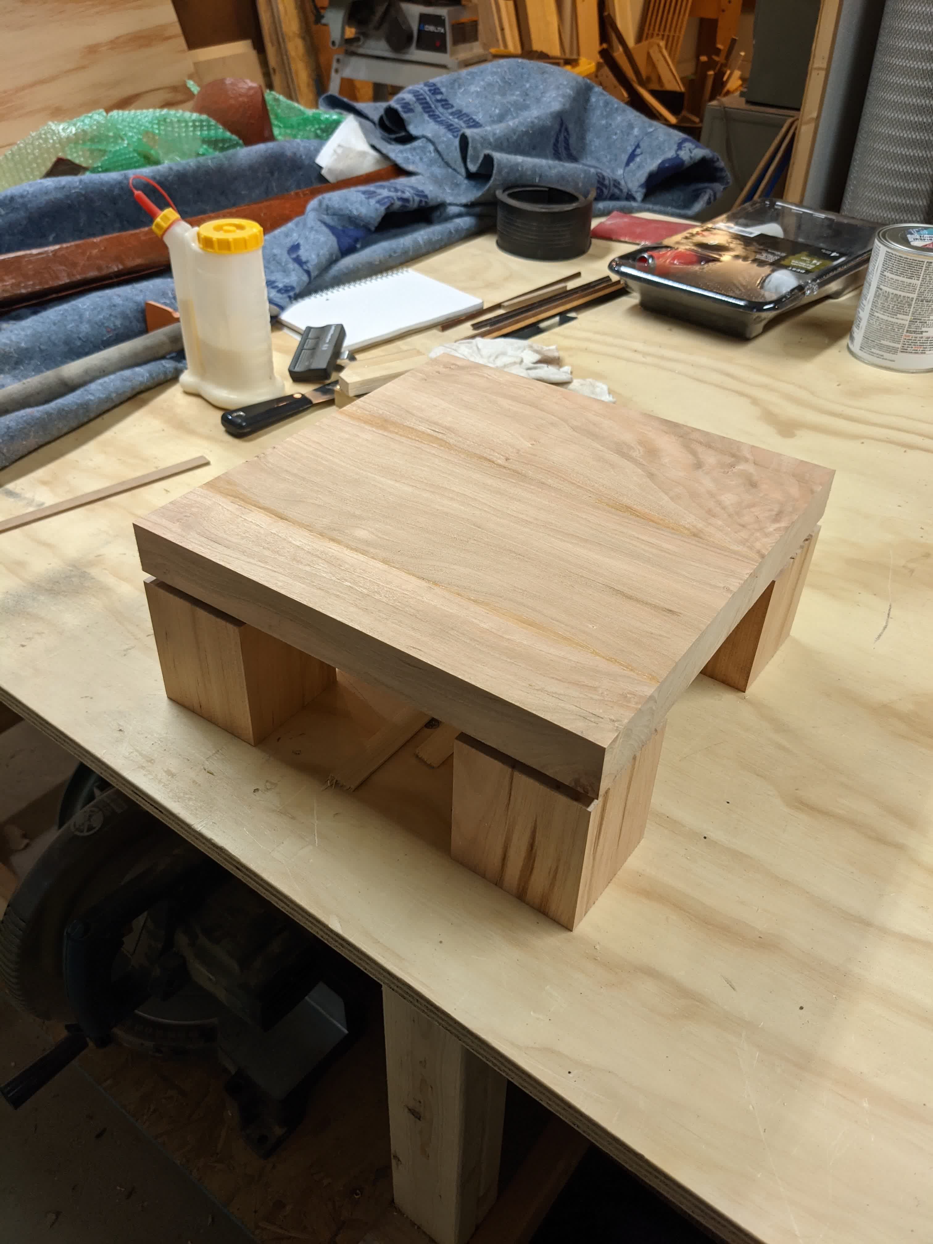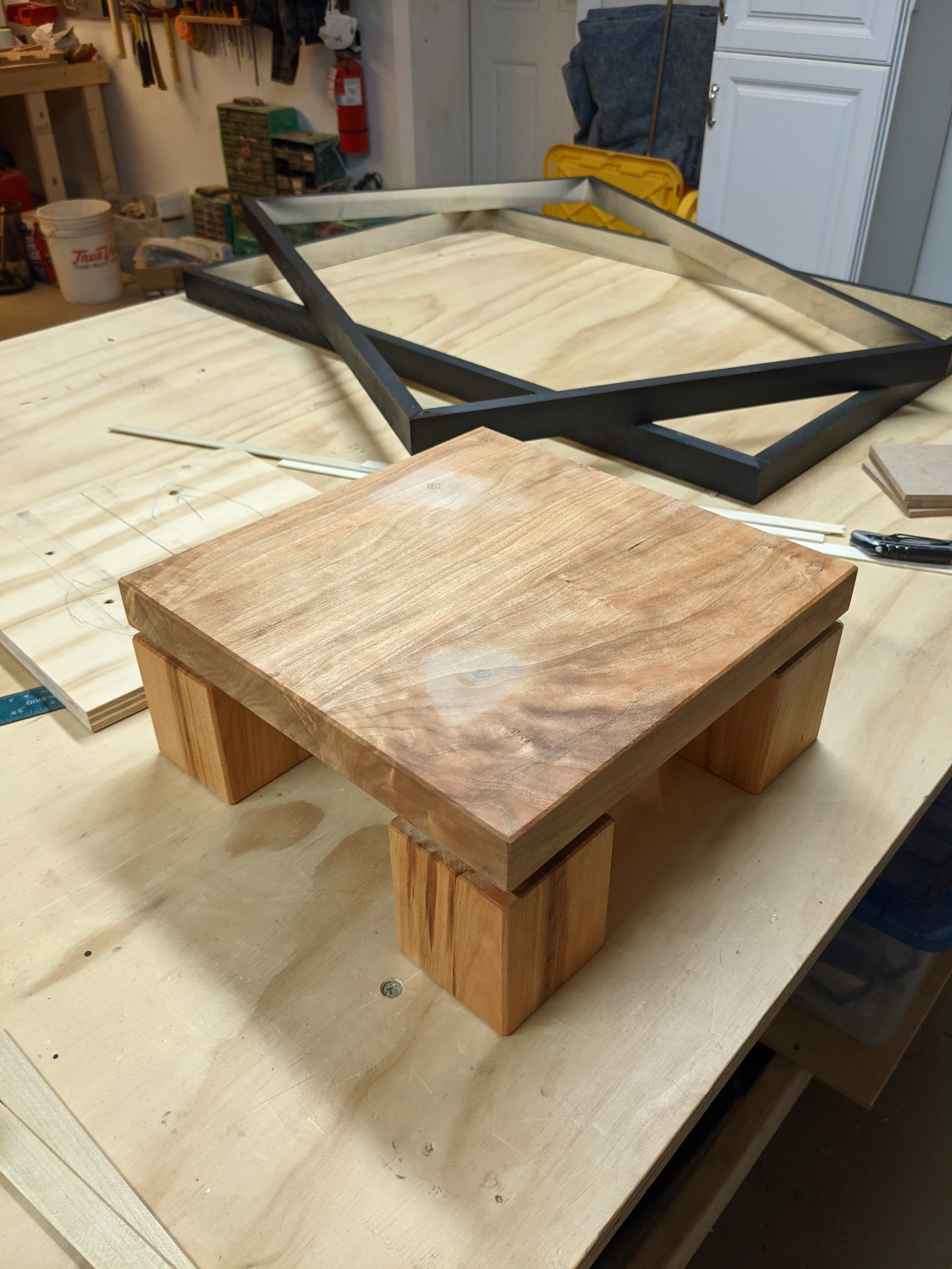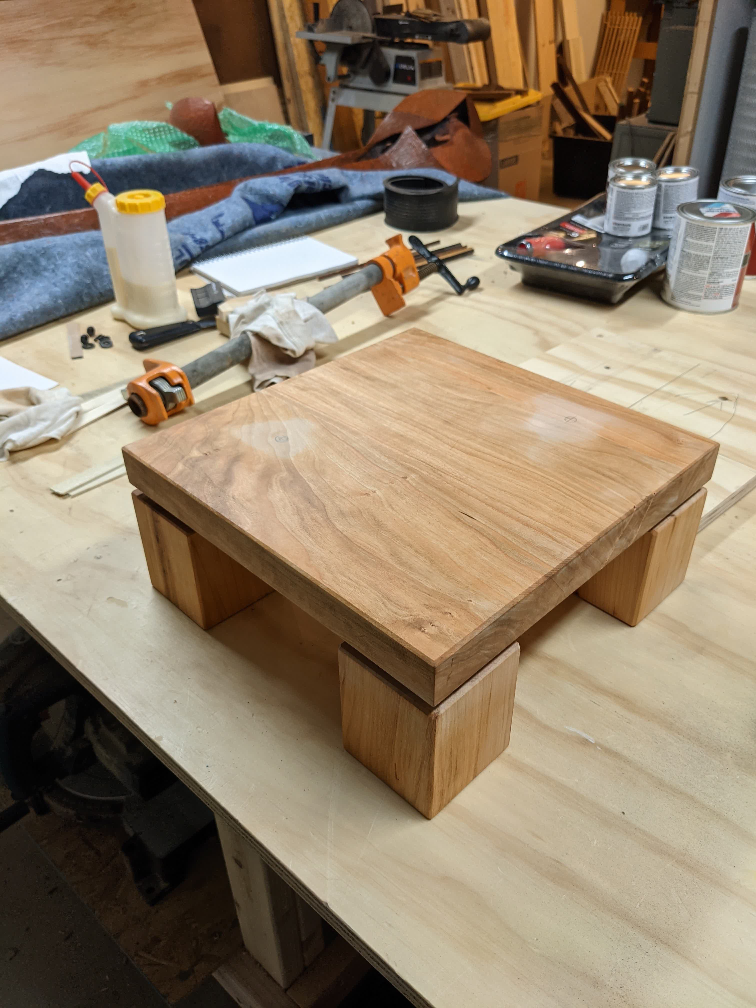 Cherry Sclupture BaseApr 3, 2021 in woodworkingFinishedThis large, bronze, sculpture fell into my lap as a casualty of moving, but it didn’t have a base. So I made one.« Walnut And Hickory Clock Walnut and Maple Cutting Board »