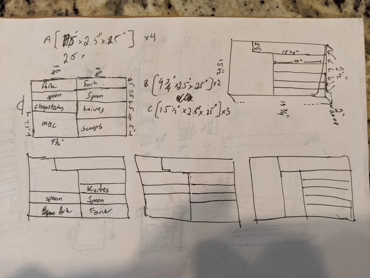 I started with a sketch to figure out how I wanted to the drawer to be divided.