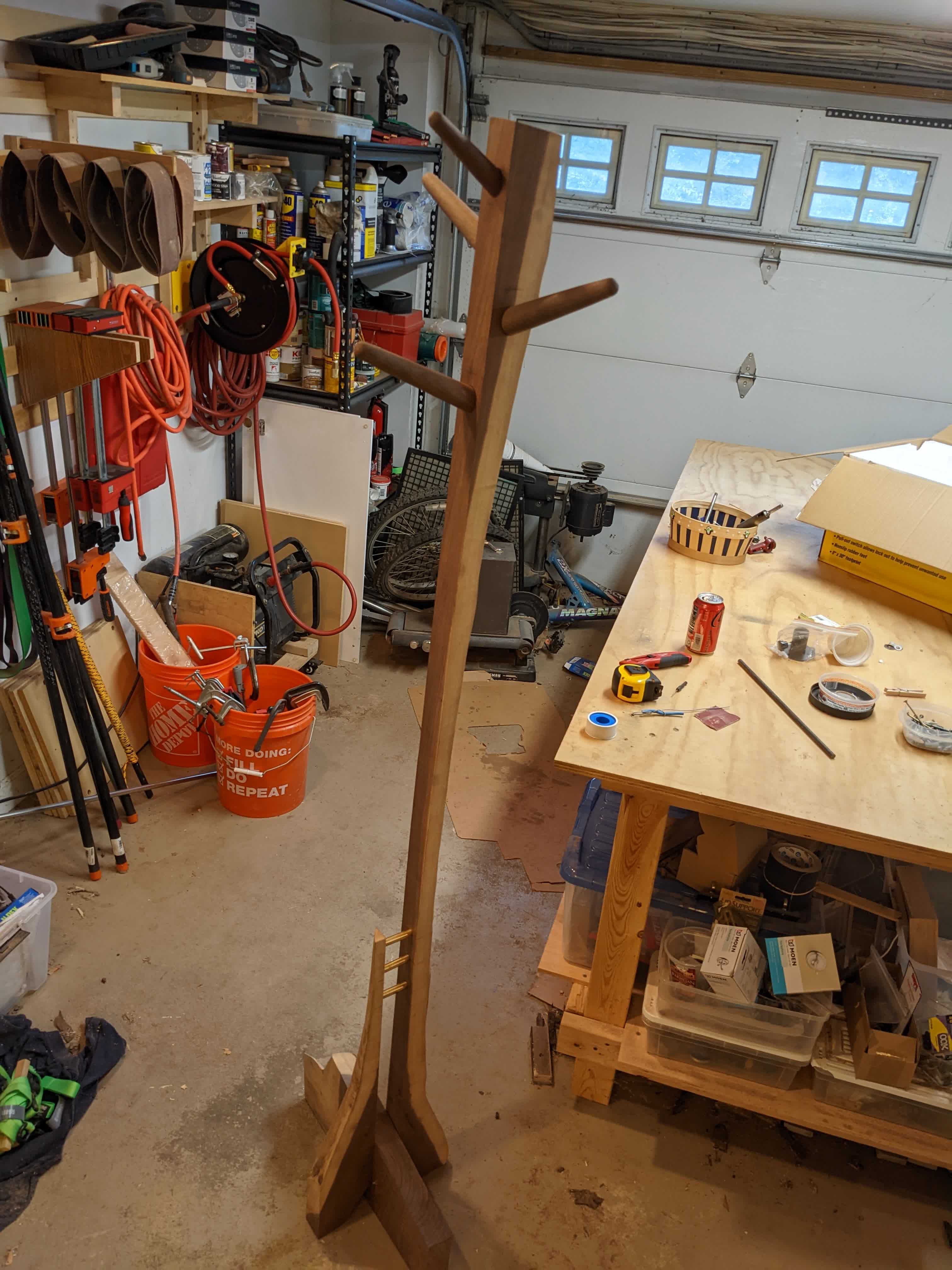 I forgot to take pictures, but I actually bought a small lathe for this project. I wanted the pegs to be round, and had some other scrap ready for it but no way to turn them. So these pegs are my frst forray into woodturning!