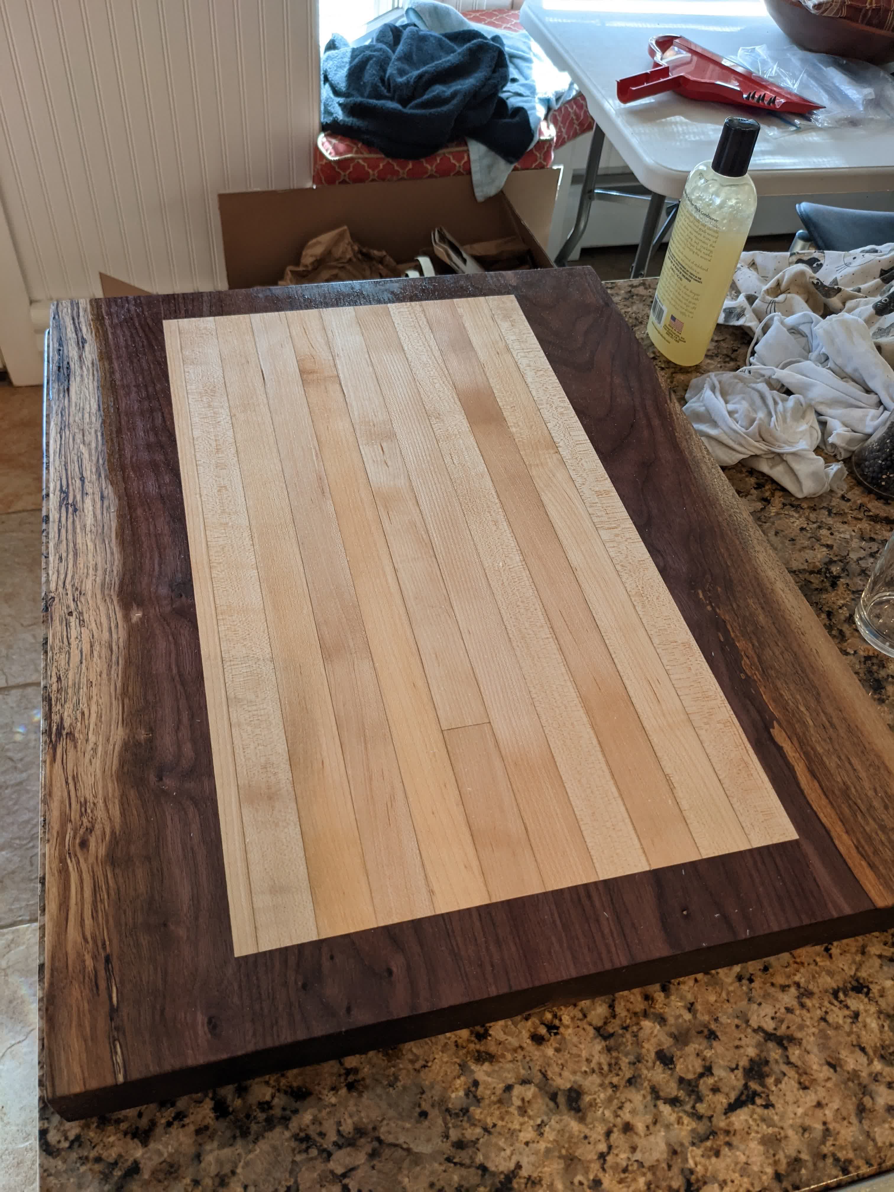 Walnut and Maple Cutting BoardApr 11, 2021 in woodworkingFinishedHaving recently made a walnut counter top for a friend, I really wanted my own. So I made a big cutting board instead. The maple was salvaged from old bowling lanes I got for free.« Cherry Sclupture Base Walnut and Maple Mallet »