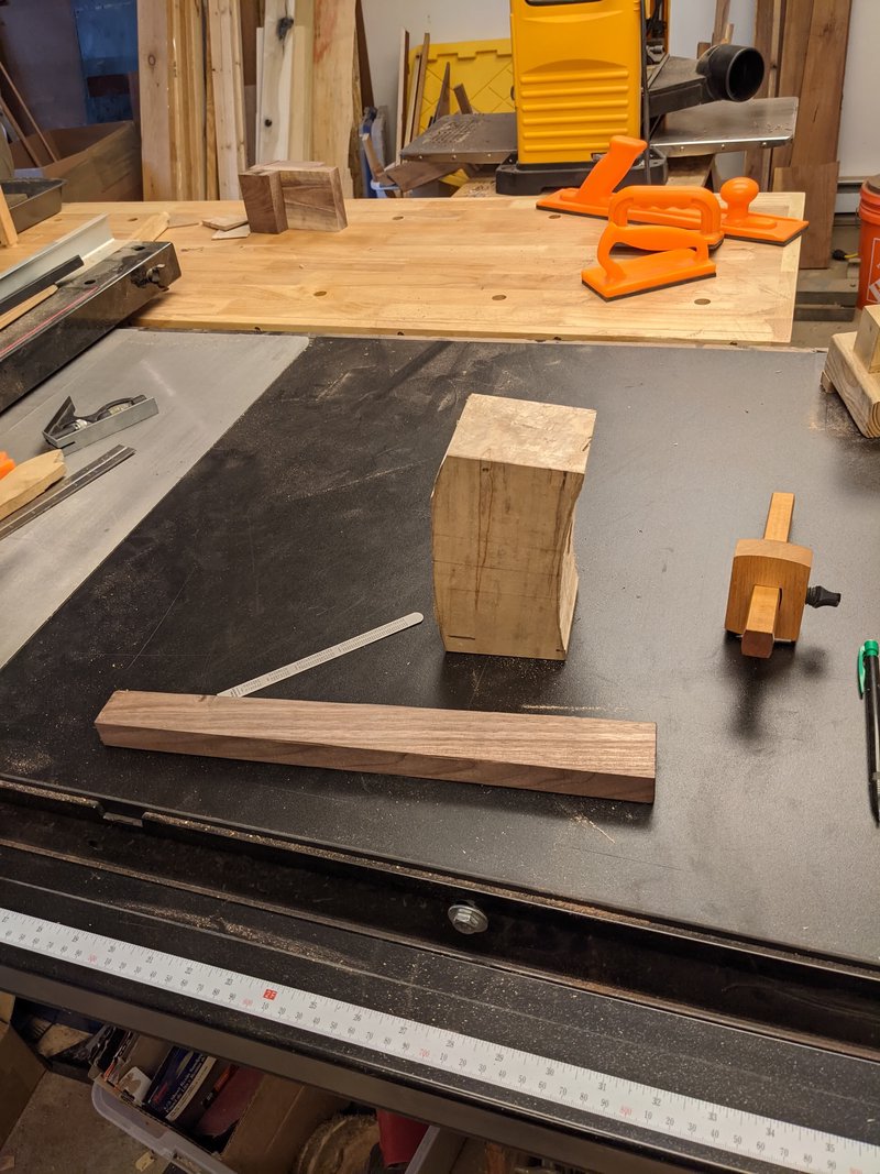 So I used some scrap walnut and a chunk of maple to create this mallet! It’s based on Paul Sellers’ design, and I followed his method of construction as well (though I used a drill press instead of a mechanical hand drill).