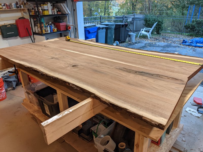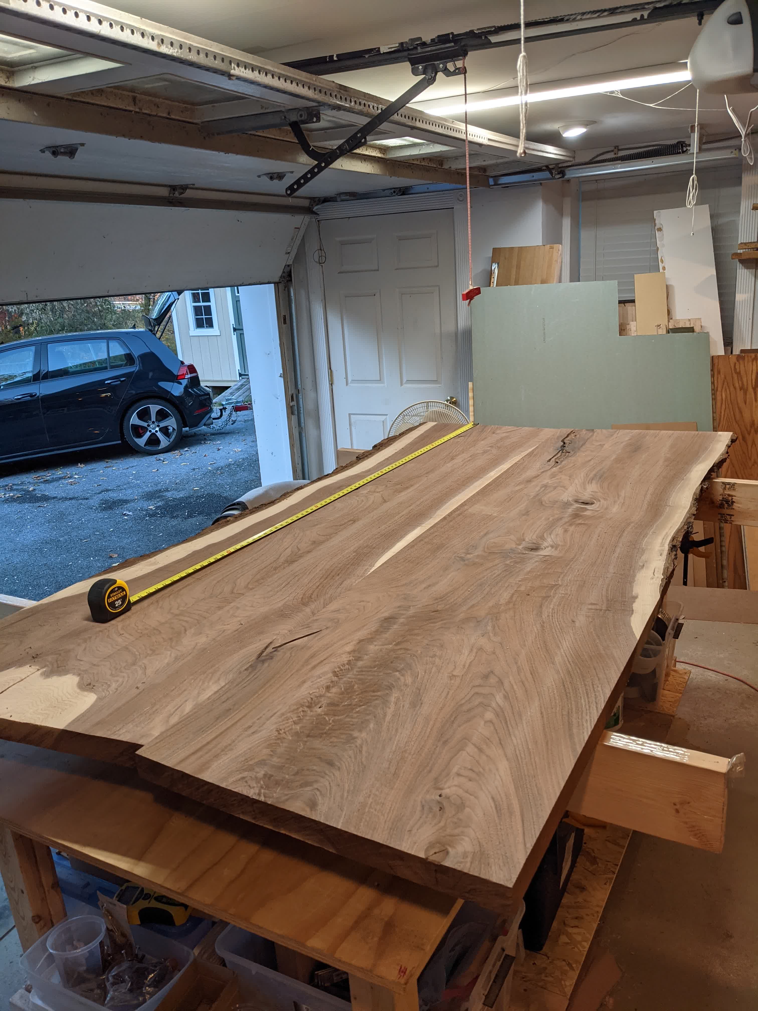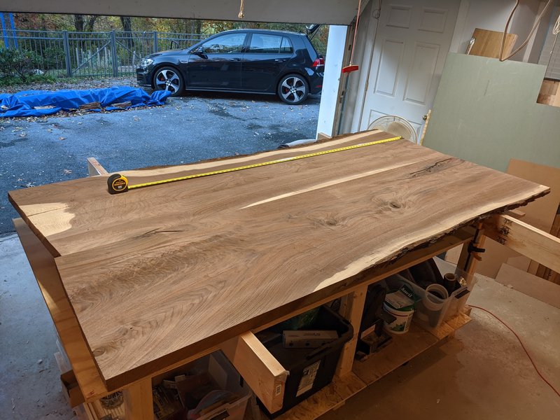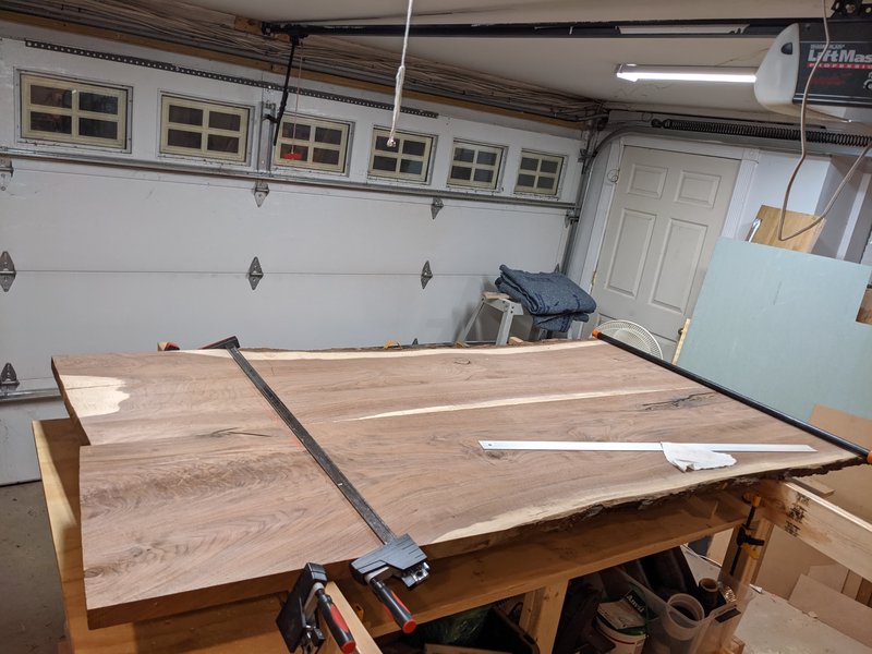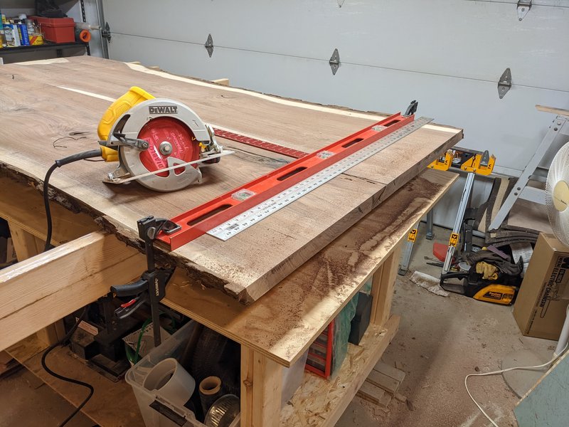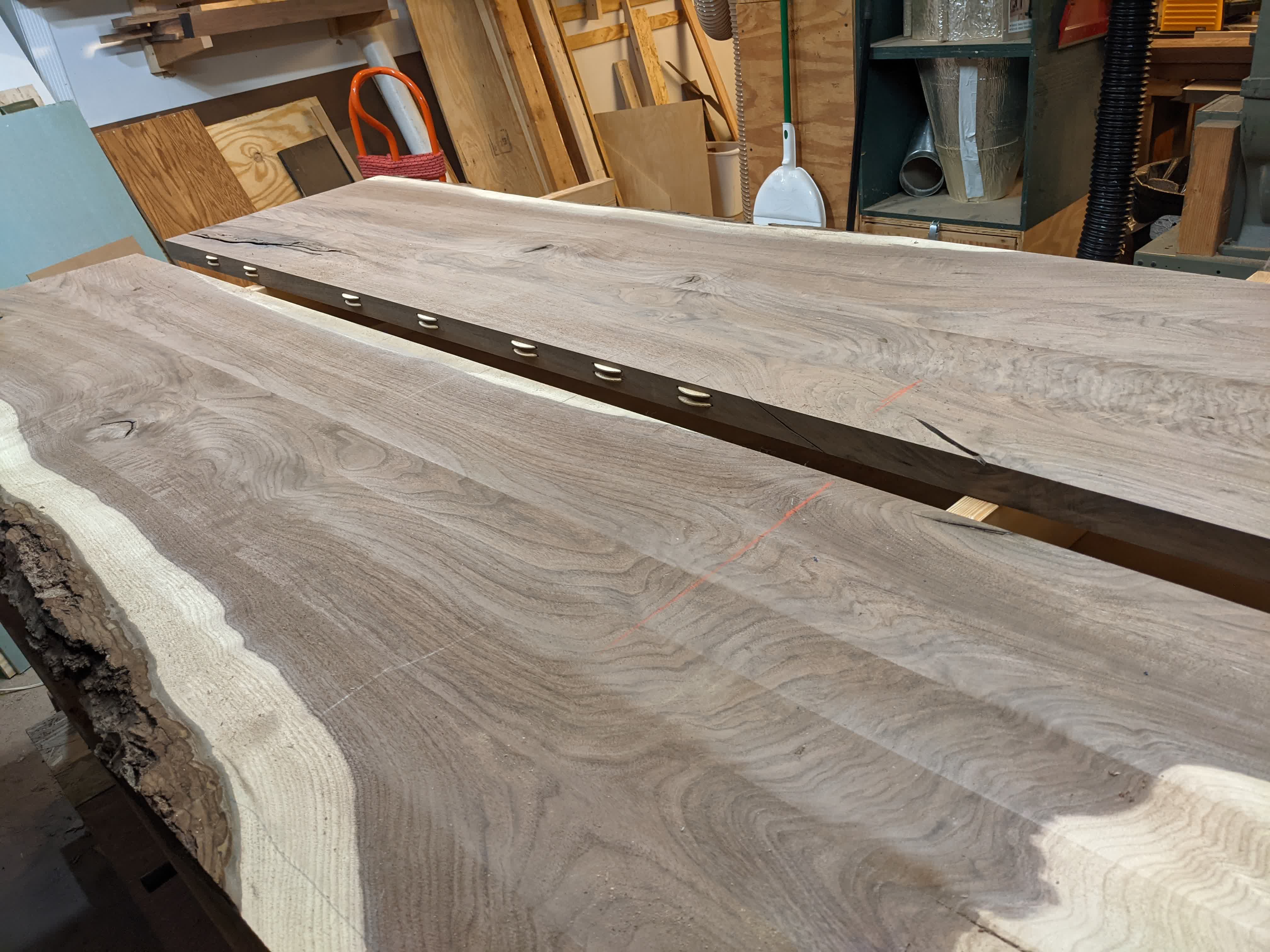The Sawmill had a huge CNC router setup, which took care of flattening each of the slabs. Then a Festool track saw to cut the joint (it’s really impressive how clean of a line that leaves).