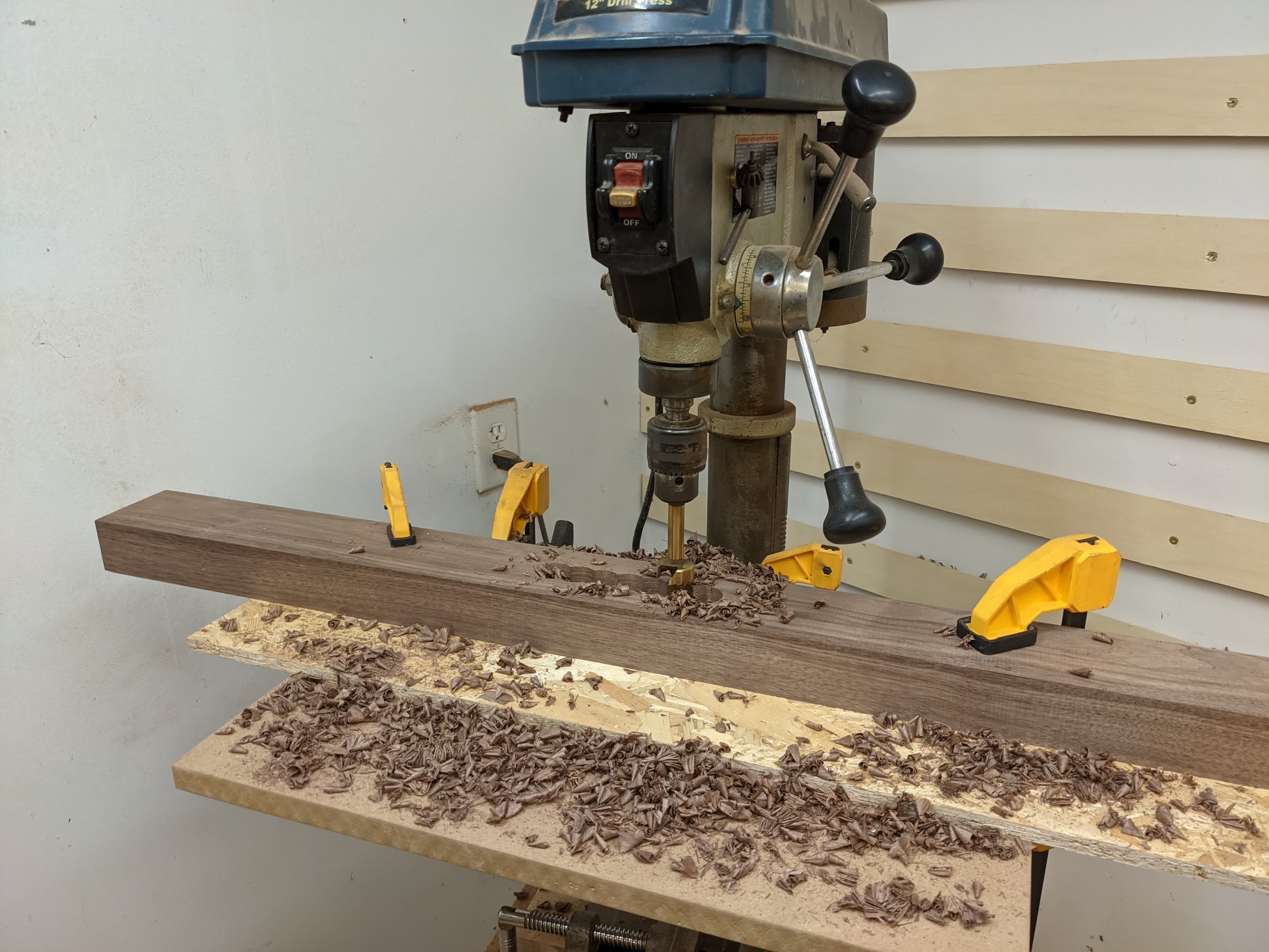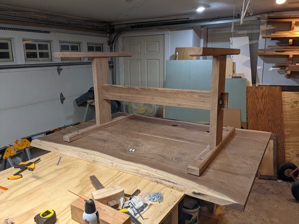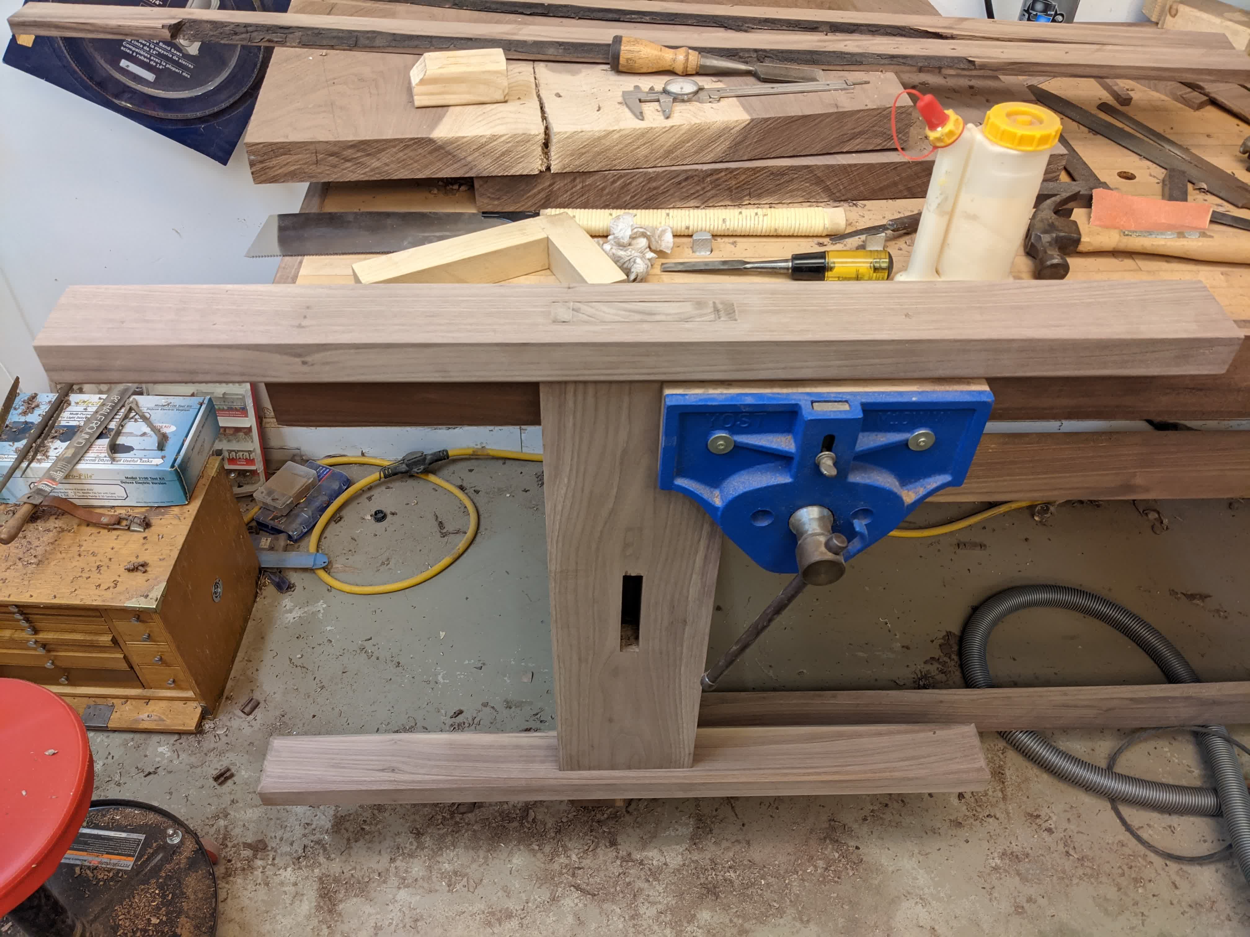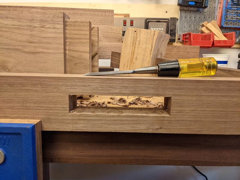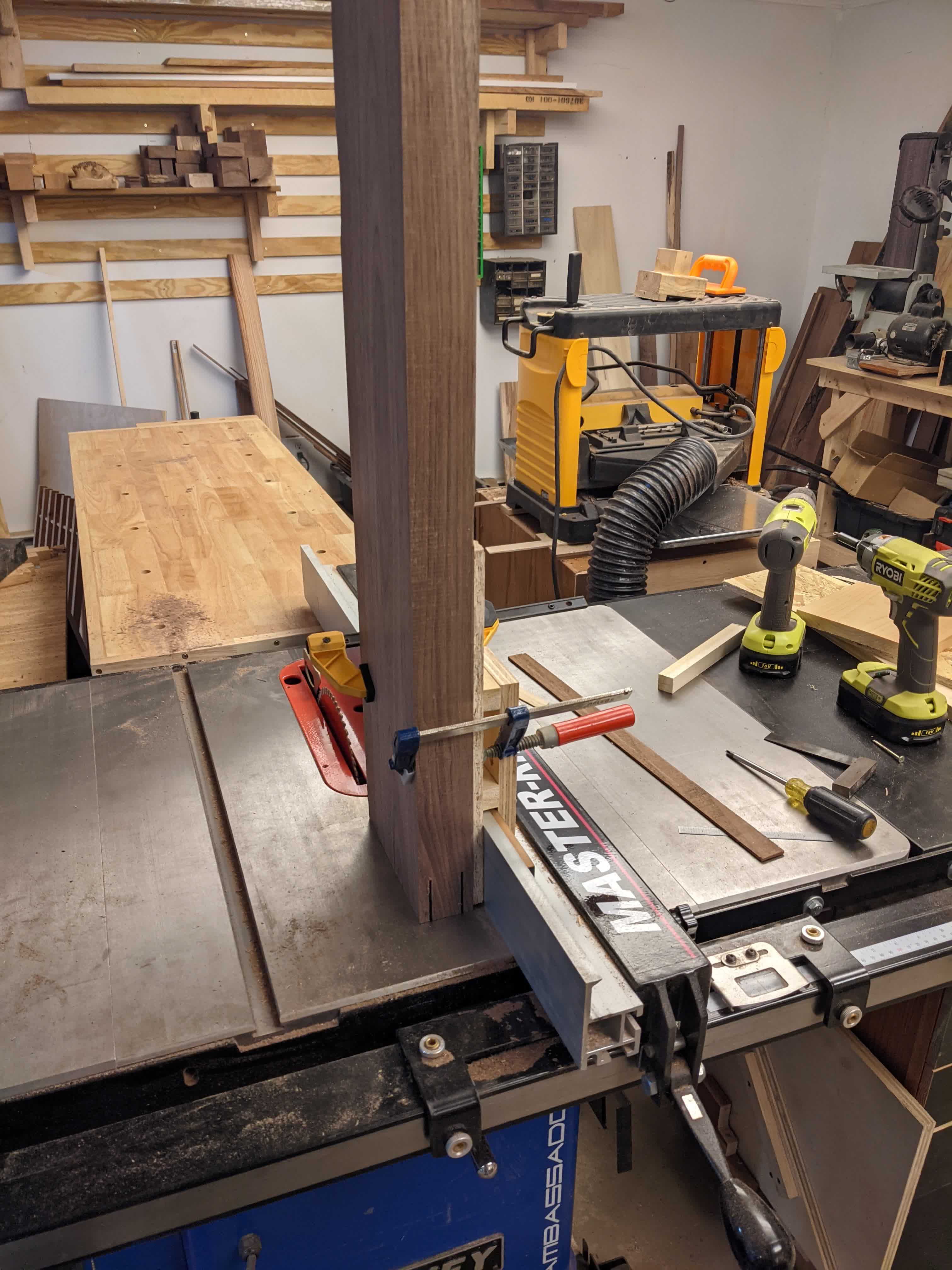 Then to start the base. Everything on the base is designed using huge mortise / tenon joints, and the stretcher in the middle will hold in place just using friction + a wedge on either end (“tusks”). That way, if (when) I need to move it, the entire base will flatten without even needing screws to come out.