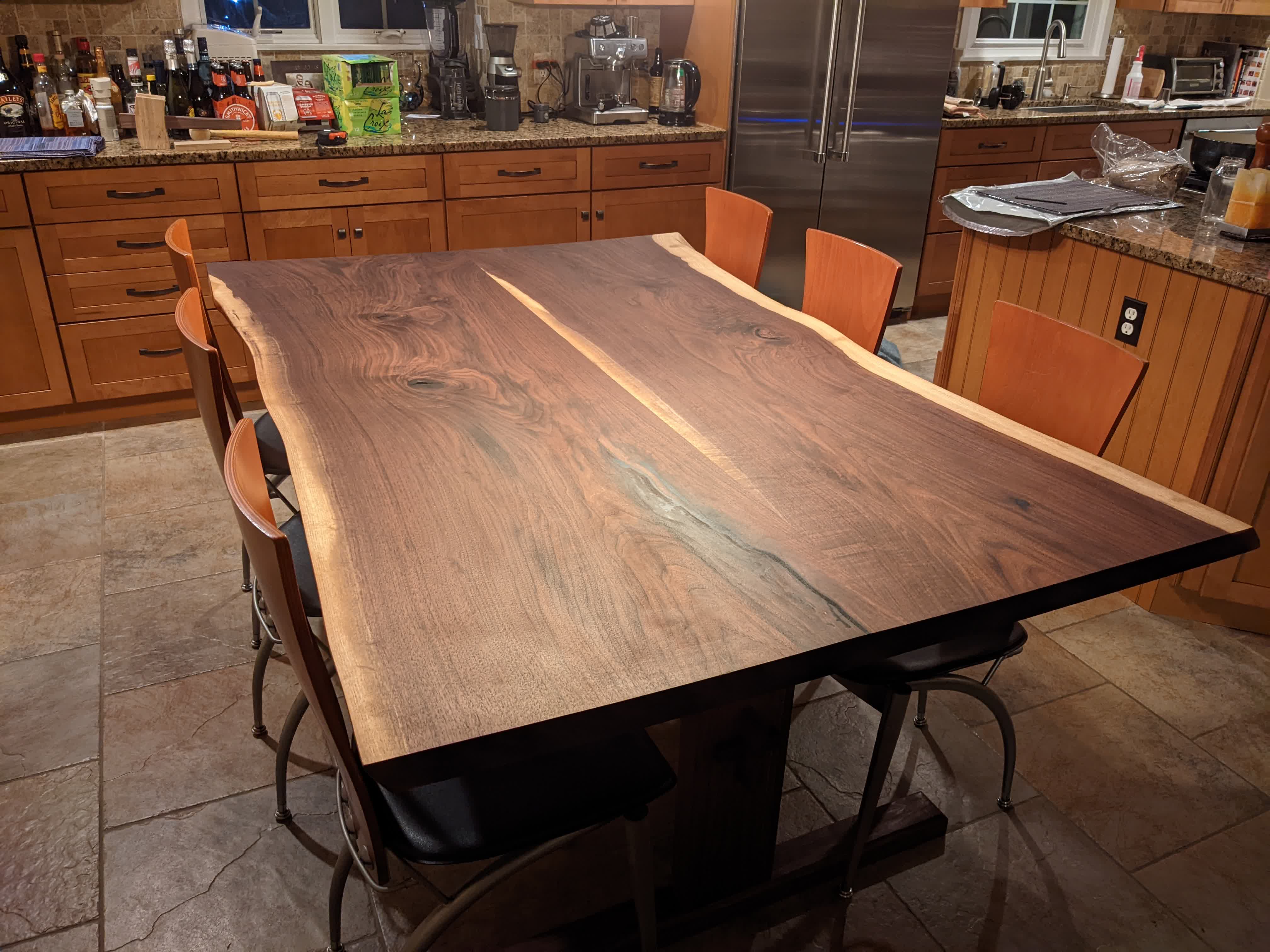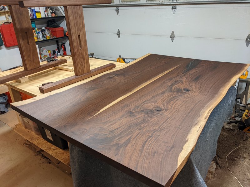 The top still had a number of voids in the surface, which I filled in using epoxy dyed black.