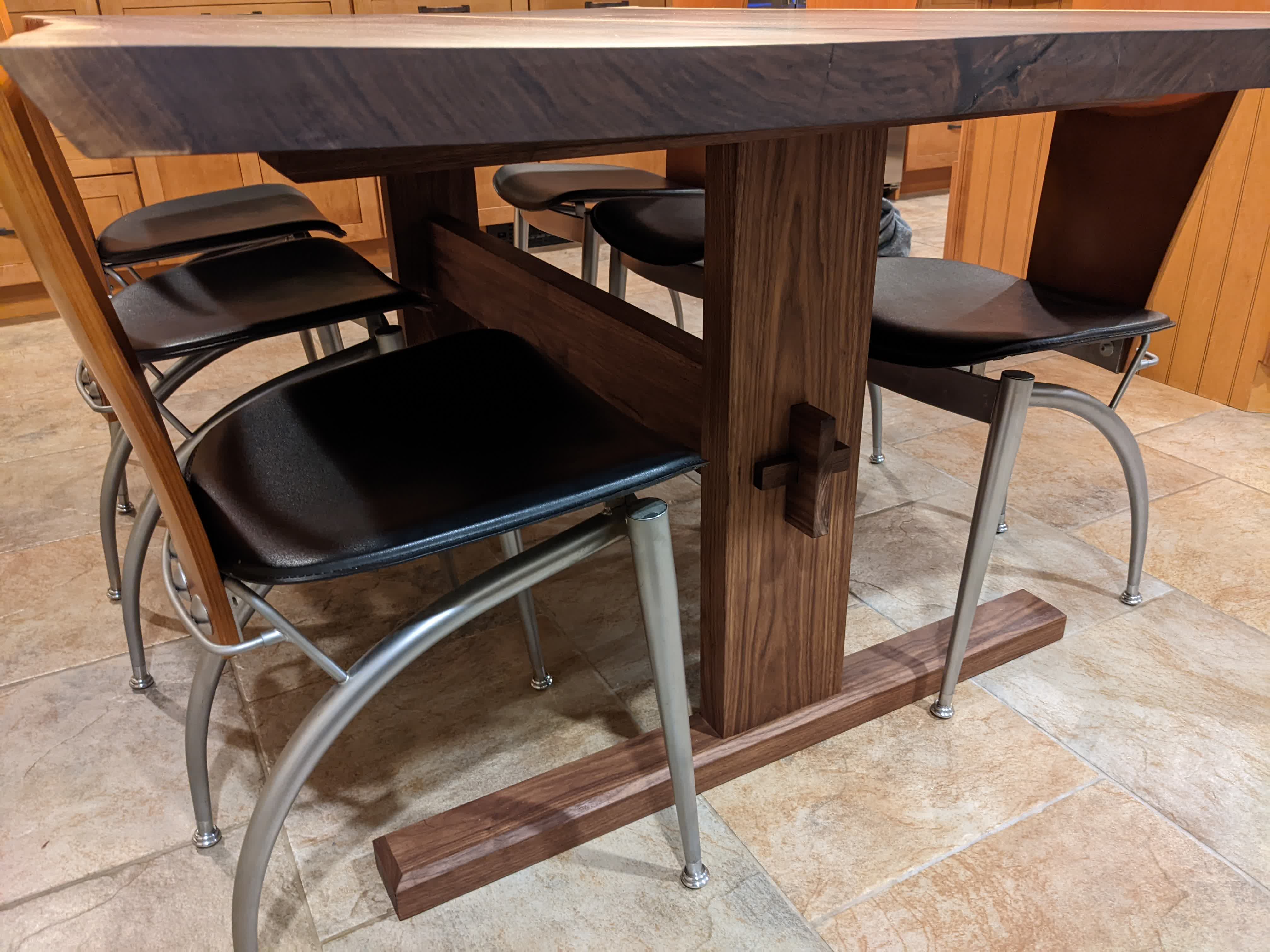 The top is about 4’ x 6’, and there’s another 1.5’ extension that’s still WIP. Without the extension it easily seats 8 (3 on each long side + 1 on each end). The extension should add another 2 (1 on each side).